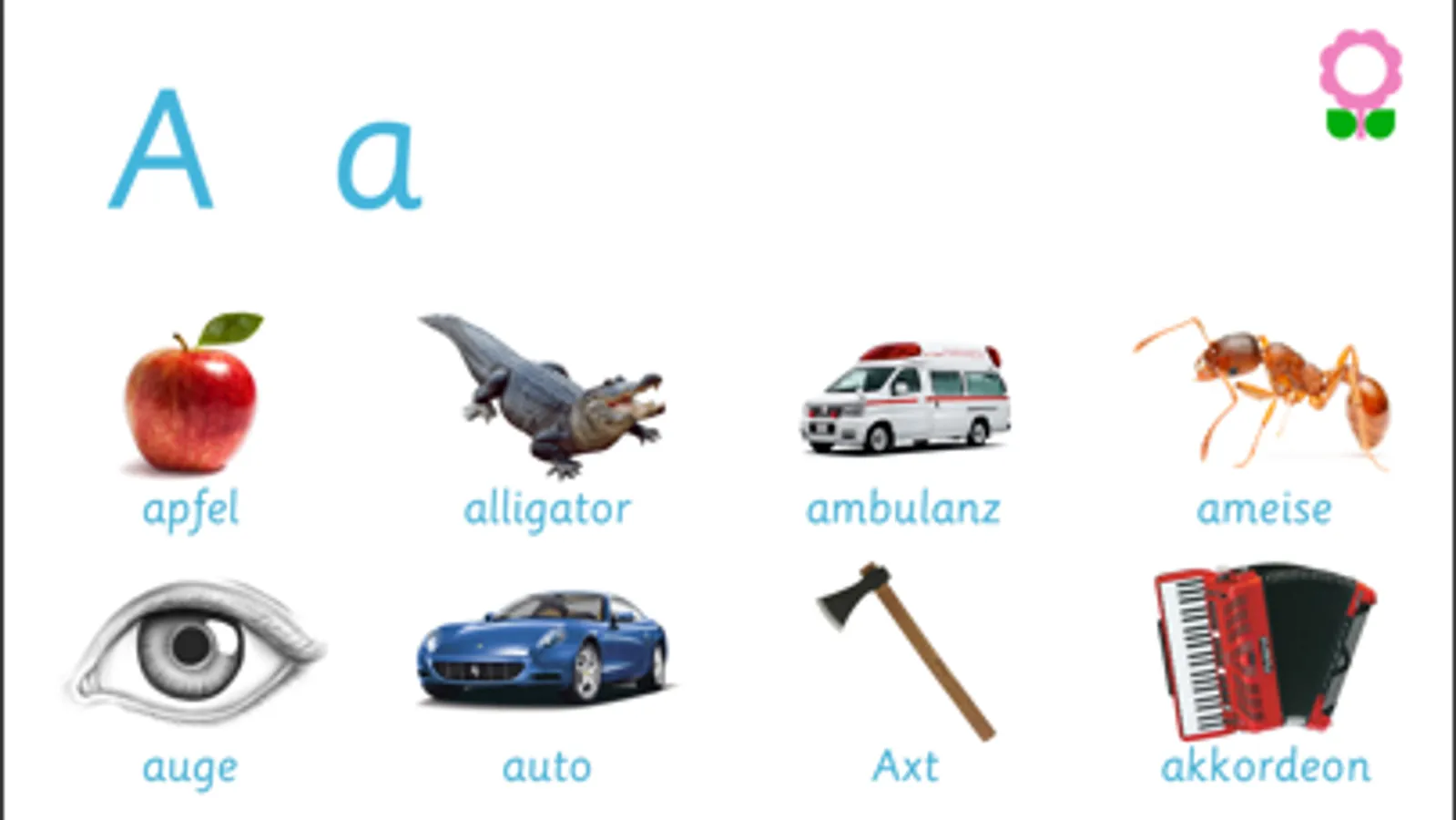 Das Alphabet und Wortschatz-Buch ist eine gestalterische und bunte App für Kinder, die alle Buchstaben des deutschen Alphabets präsentiert. Sie ermöglicht sowohl die Erkennung und Benennung als auch die Aussprache von Gegenständen. Eine wichtiger und lehrreicher Bestandteil für Anfänger ist, dass die Lerner in der Lage sind, Groß- und Kleinschreibung zu erkennen. Deshalb verfügt diese App mehrere Wörter pro Buchstabe wie bei keiner anderen erhältlichen App in diesem Bereich.