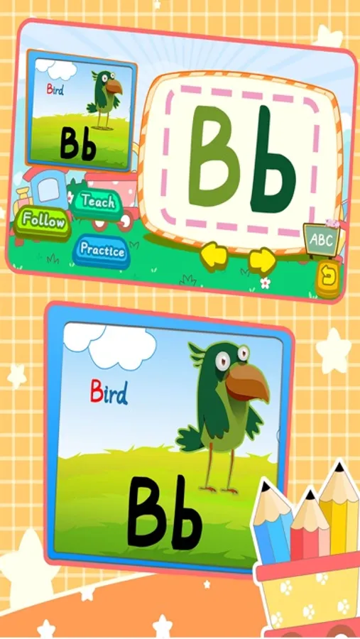 The alphabet is a topic that must be covered thoroughly with elementary students of any age. This alphabet app helps students practice upper and lowercase letters as well as sounds. This app aim at helping children and kids learn writing english alphabet step by step.