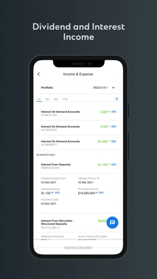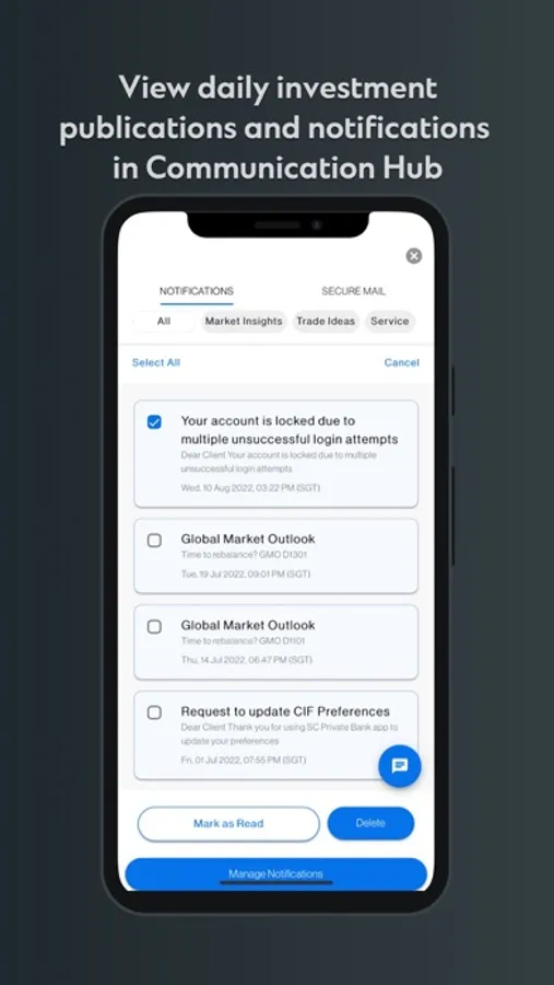 The SC Private Bank app offers you access to daily market insights, portfolio views, past transactions, statements and advices on-the-go. What’s more, you’ll have access to messaging and document sharing tools to snap and share documents to your Private Bankers. - View your portfolio and summary in interactive dashboard designs