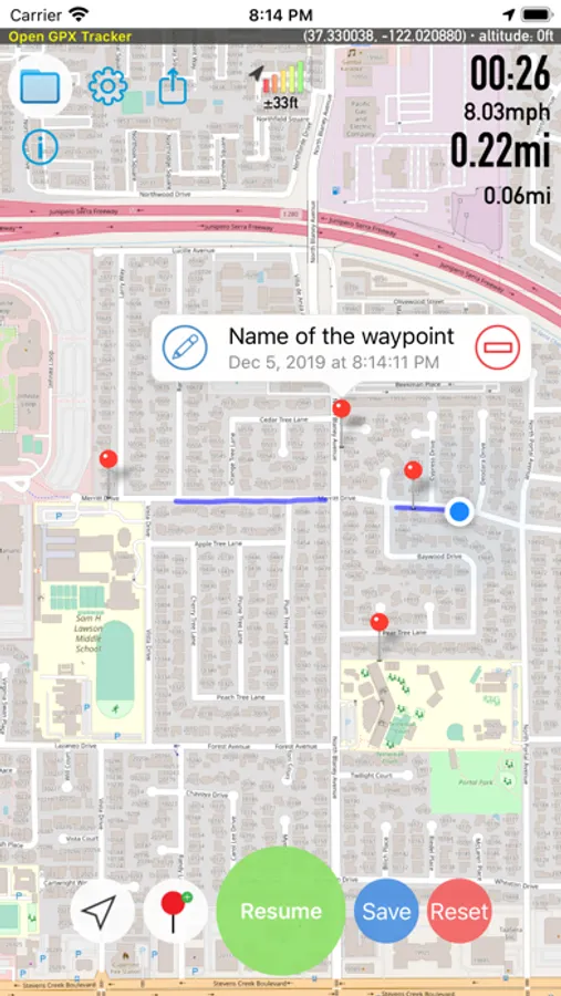 Create GPS traces with waypoints. Offline map support, no time restrictions, no ads, no in-app-purchases, and all the data is private.