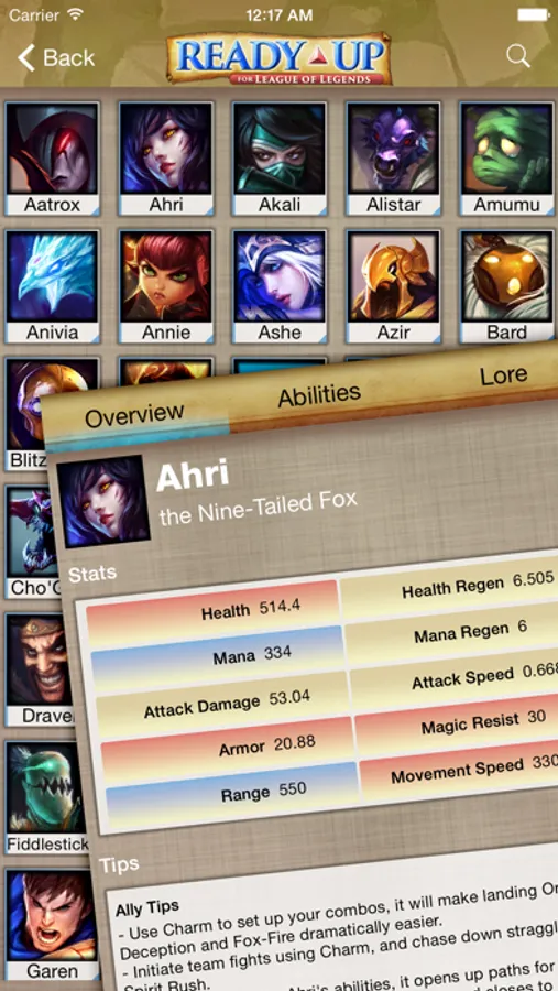 • CHAMPION AND ITEM DATABASE – We have up to date information on all of the champions and items found in the current patch of League of Legends. These information pages are always one tap away from anywhere in the app.
