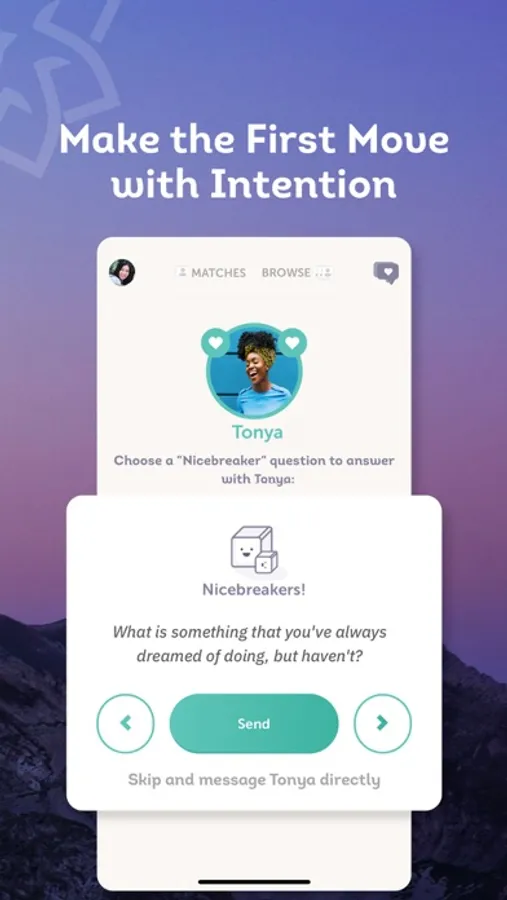 Daters on MeetMindful use Nicebreakers to start their conversations — there’s no ice to break here!