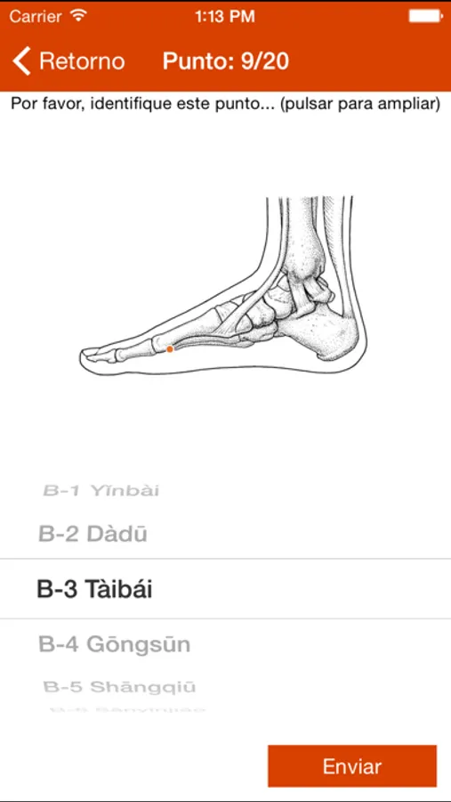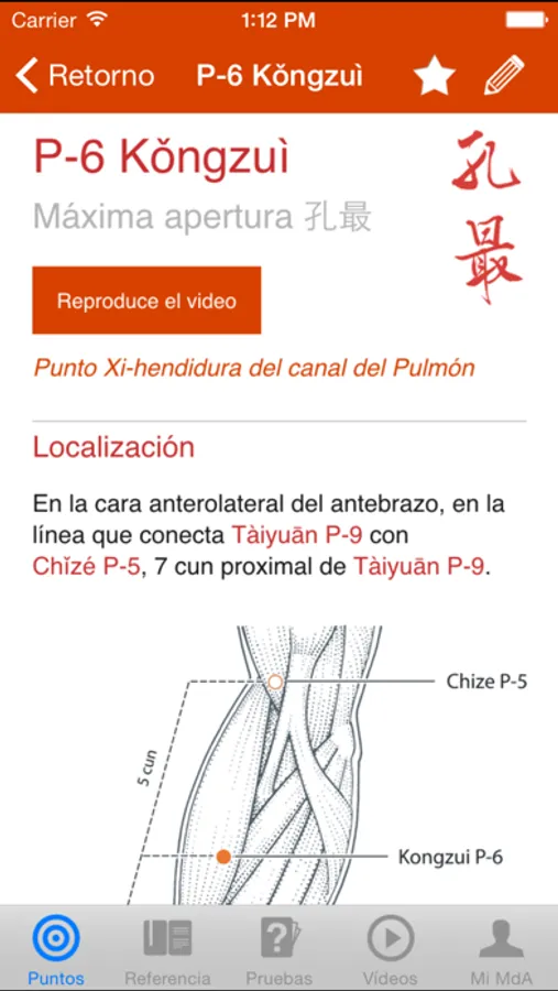 • Dos funciones de búsqueda: Una que responde simplemente al nombre (en Español o pinyin) o a la numeración del punto. Y la otra que le permite buscar el contenido de cada punto y, si lo desea, especificar en que canal o vaso quiere realizar la búsqueda, en que apartado dentro del punto (acciones, aplicaciones clínicas, punción, etc.) e incluir sus propias notas en la búsqueda.