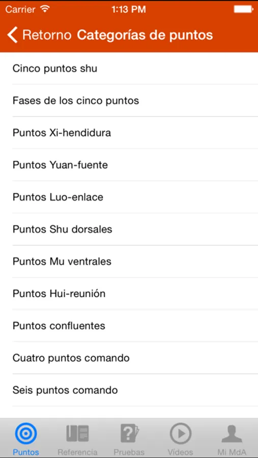 • Todas las categorías principales (los cinco puntos shu, los puntos xi-hendidura, los puntos shu-dorsales,...) fáciles de revisar