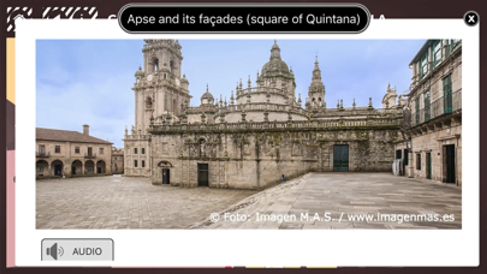 A handy guide and an audio app of the Cathedral of Santiago de Compostela in a one device, your own phone!. Entertaining and intuitive, the only way to know each place and each chapel of the cathedral during your visit. You will also have a memory forever of what you've seen and it costs less than a cup of coffee.