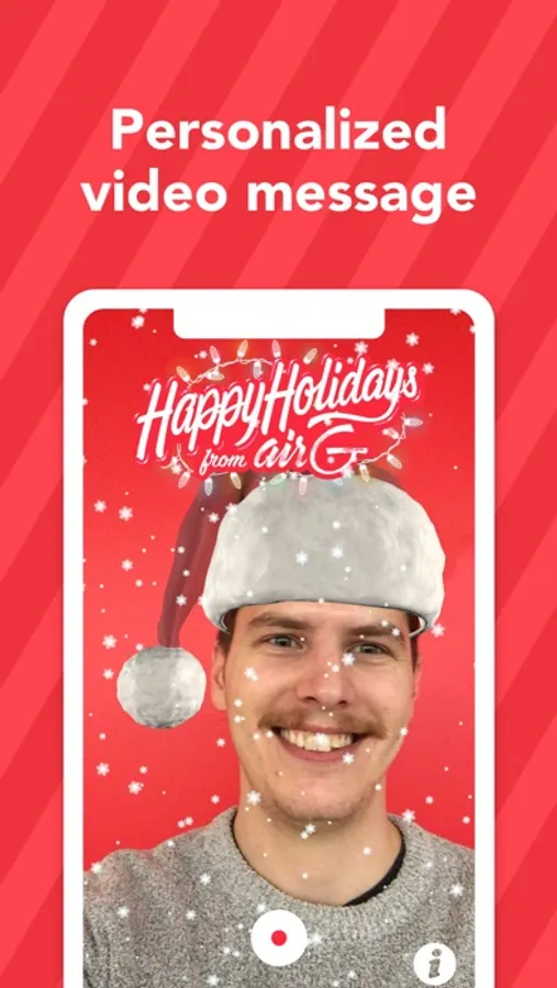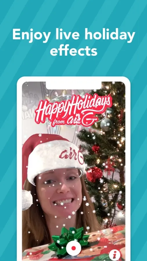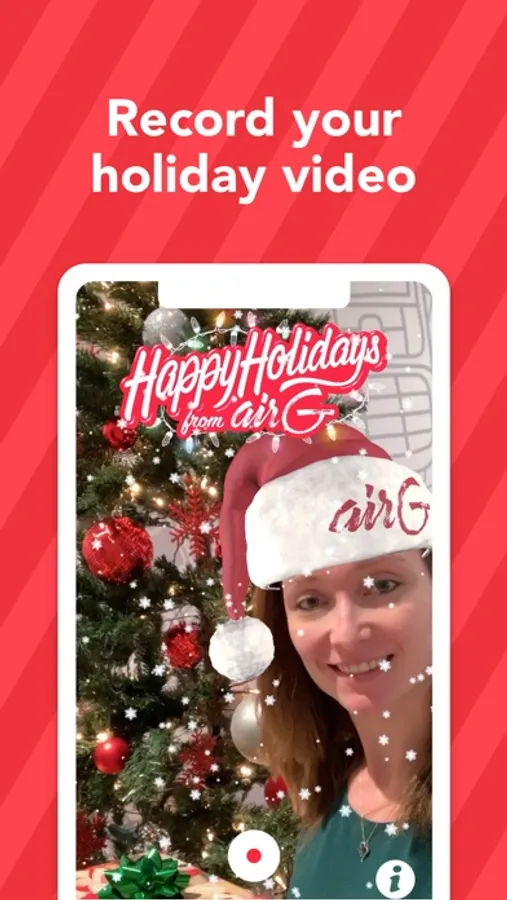 With the airG Greetings video maker you can send a personal message to your friends and family using a fun video filter with seasonal attire and decorations.