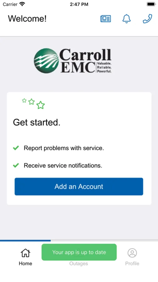Caroll EMC's Outage Pal app. Check outage status, report outages, receive outage updates via push notifications, and stay informed.