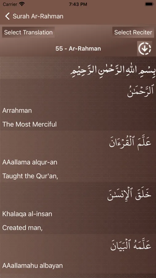 Read and listen verse by verse recitation of Surah Ar-Rahman ٱلرَّحۡمَـٰنُ in beautiful voices of many International reciters. The only app with so many reciters, translations and themes. And its free.
