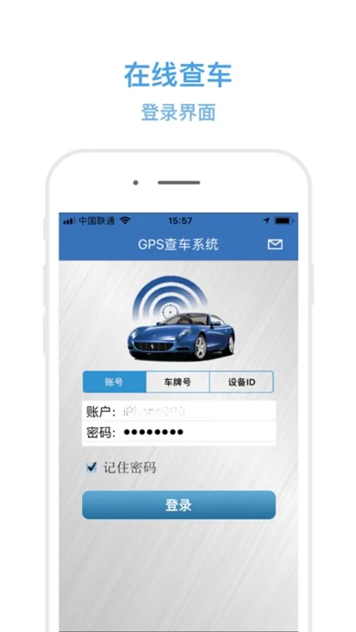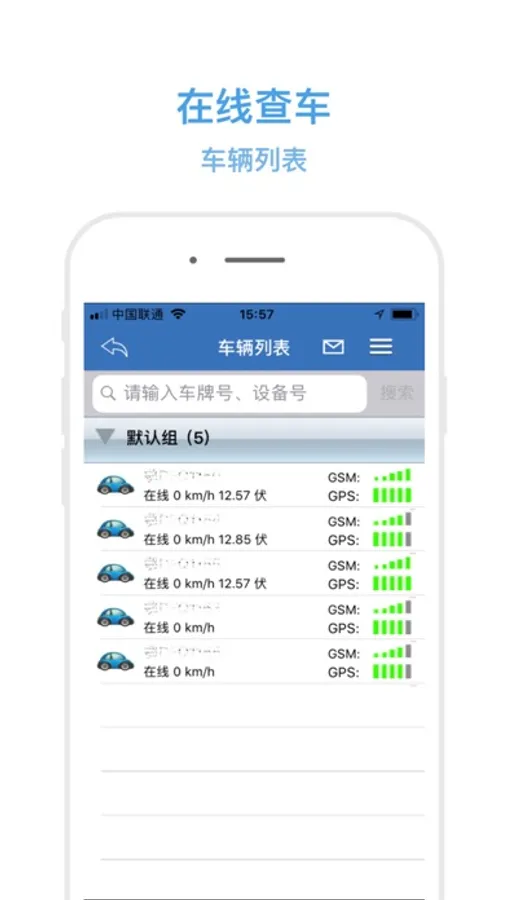 主要功能包括:车辆分组列表查询、车辆实时监控、追踪、导航、历史轨迹回放、报表查询、远程锁车(添加车辆由运营商从后台添加)