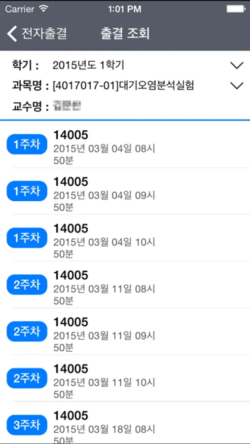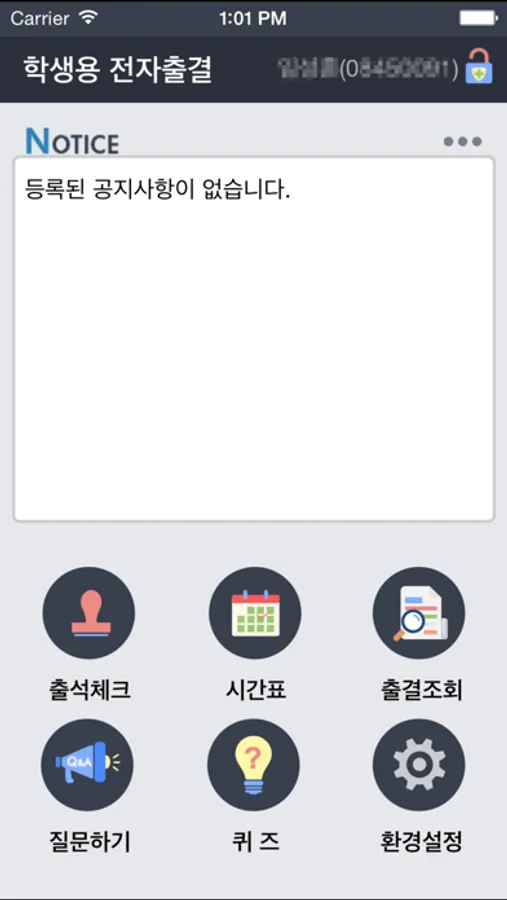 - 출결 기능 : 강의 시간에 모바일 단말기로 출결