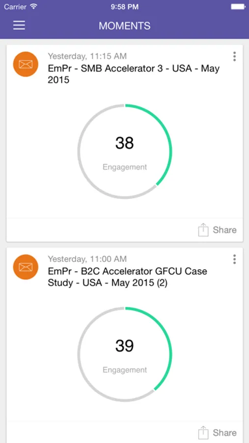 Marketo Moments is a beautifully designed mobile application that provides marketers with what’s important to them at a moment in time, wherever they are. Marketers can see how their most recent campaigns are performing and take action on upcoming campaigns, all from the convenience of their mobile device. Marketo Moments also provides a focused set of reports to help marketers measure the overall impact of their marketing efforts, and a sharing feature to make it easy to celebrate successes across the team.