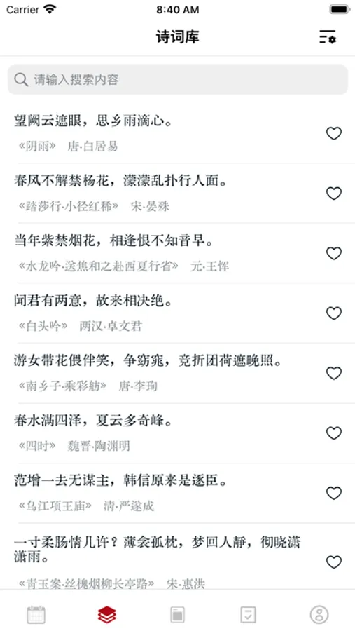 4、诗词日历:提供诗词日历,快速查看每一天的诗词。