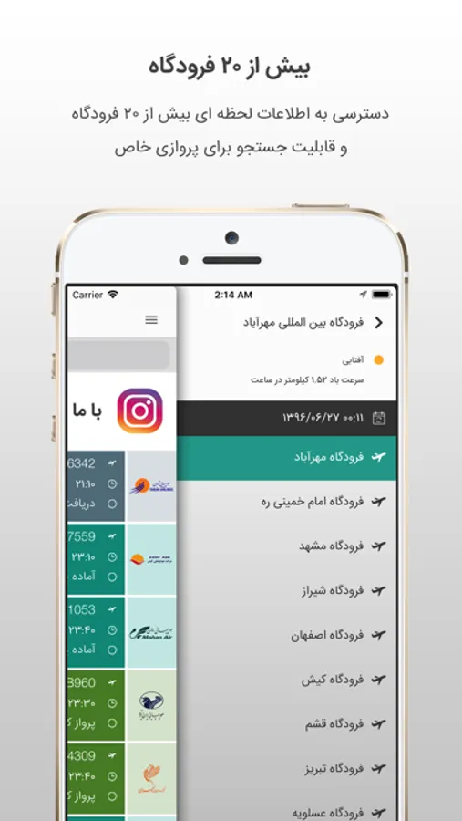 وضعیت پرواز های فرودگاه های کشور را در گوشی خود داشته باشید. با اپلیکیشن اطلاعات پرواز فرودگاه می توانید از وضعیت پرواز های ورودی و همچنین خروجی فرودگاه های کشور از جمله فرودگاه های مهرآباد، امام خمینی ره، مشهد، شیراز، اصفهان، عسلویه، کیش، قشم، تبریز، عسلویه، اهواز، بندرعباس، رشت، یزد، زاهدان، کرمانشاه، اردبیل، کرمان، لارستان، همدان، بیرجند، ارومیه، آبادان و همچنین گرگان باخبر شوید.