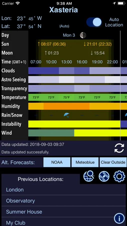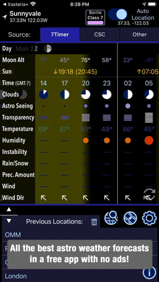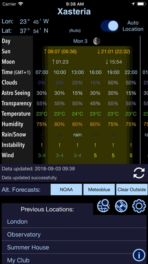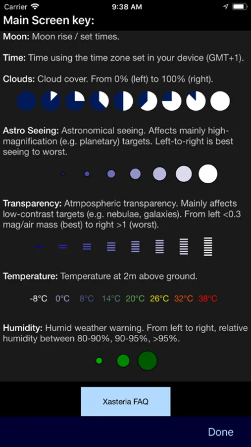 Xasteria was originally created to bring the excellent ASTRO weather forecast of the service 7Timer to your iOS device. With worldwide coverage and one of the best performing astro-seeing models, it is a great tool for all stargazers.
