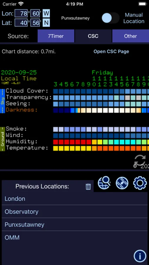 The app has been extended to offer you quick access to all of your favourite weather resources and tools: Clear Sky Charts (for North American users), Clear Outside, Meteoblue, Windy, Astrospheric, Sat24.com, the latest water vapor satellite images and even light pollution maps.
