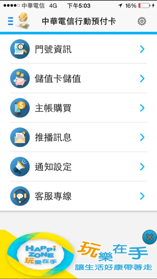 中華電信行動預付卡使用戶必備,免等待即提供全天候隨身服務!包含預付卡即時「門號資訊、儲值卡儲值、信用卡儲值、主帳購買、通知設定、推播設定、客服專線」等多項實用功能!