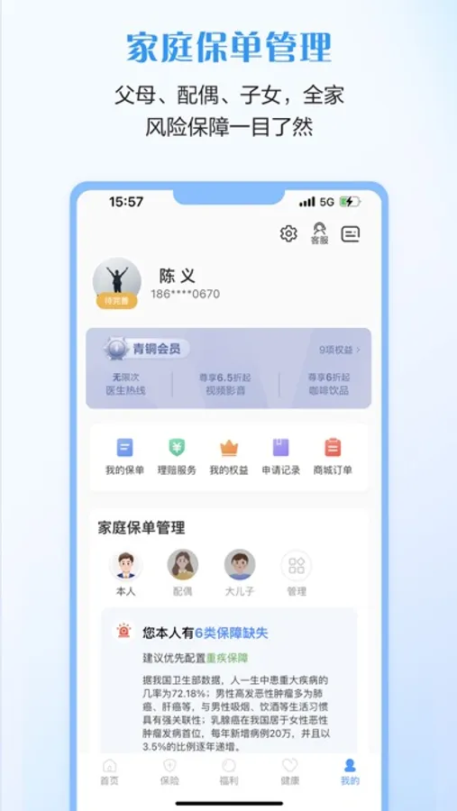 父母、配偶、子女,全家风险保障一目了然,帮助完成家庭保障规划。