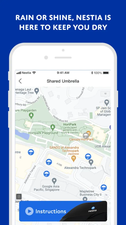 Scan the QR code on the umbrella stand to rent an umbrella