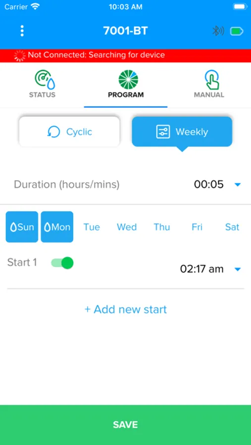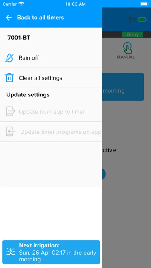 The App operates Galcon Bluetooth enabled controllers, models 7101BT, 9001BT, 11000BT 6100BT 8000BT