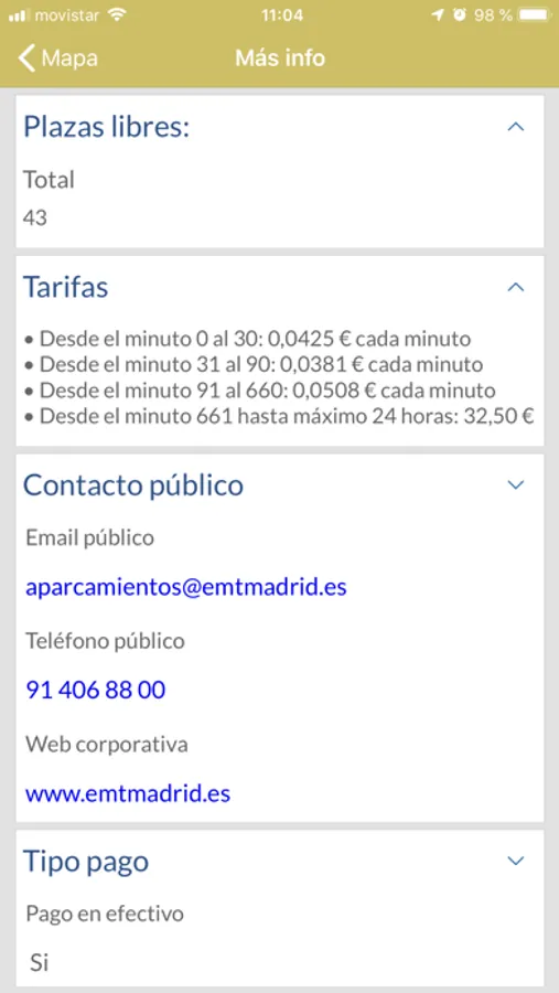 EMT Madrid’s Official application for knowing location and relevant information about public parkings in Madrid: Free spaces, timetables, services, contact information and more.