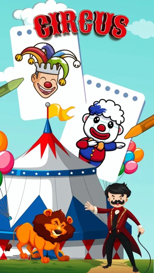 Paint the fantastic and fun world of the circus! Color clowns, acrobats, jugglers, animals and much more. Paint cute animal draws. Perfect for boys and girls who love the circus. The princesses of the house will also be amazed. If your children also like unicorns, cats or kittens or horses and ponies, we have a coloring book for them too: coloring cats drawings, coloring unicorns drawings and coloring horses.