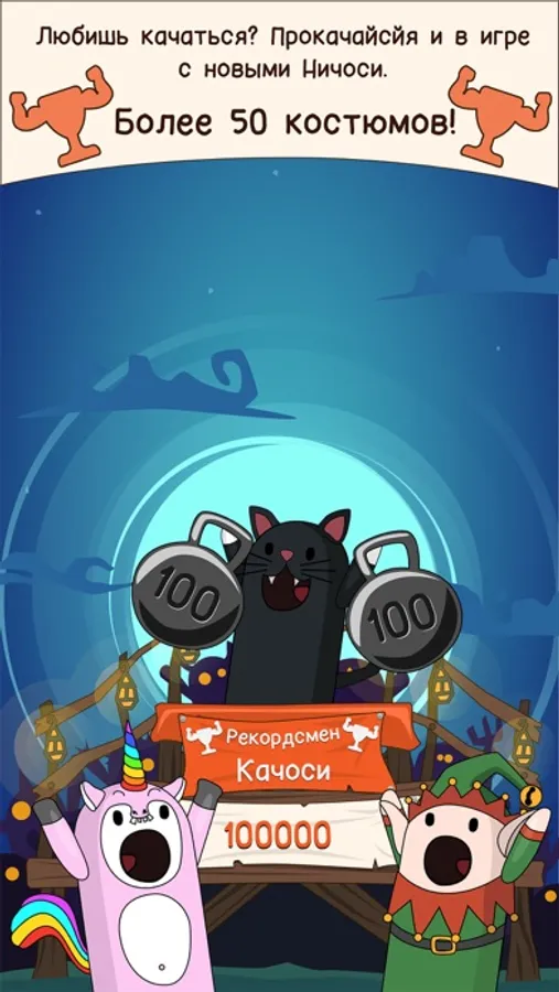 И помни: мы за честный спорт! Прокачивание качоси полностью за тобой! Есть Качоси, которые используют стероиды! Натуральный бодибилдинг против химического! В таблицу лидеров попадают только те Качоси, которые качаются при помощи тапов, остальные с позором оттуда удаляются! Ничоси! Обмануть тренера не удастся =)