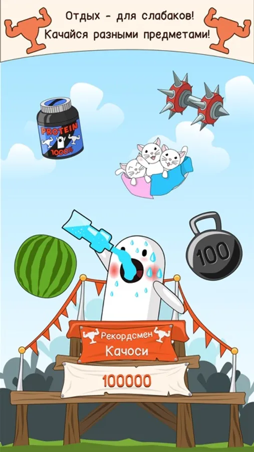 Настоящий Качоси выбирает эту игру-кликер, чтобы прокачиваться даже тогда, когда его любимая качалка закрыта! Ничего себе, да?!