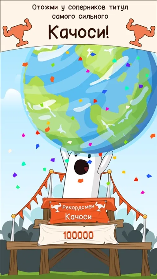 Стань титаном этого спортивного кликер-симулятора! Тапай, жми, качайся! Увеличивай свой рекорд и побеждай соперников! Отожми у них победу, и стань самым сильным Качоси! И пусть все видят, что ты лидер, и говорят о тебе: "Ничоси какой Качоси!"