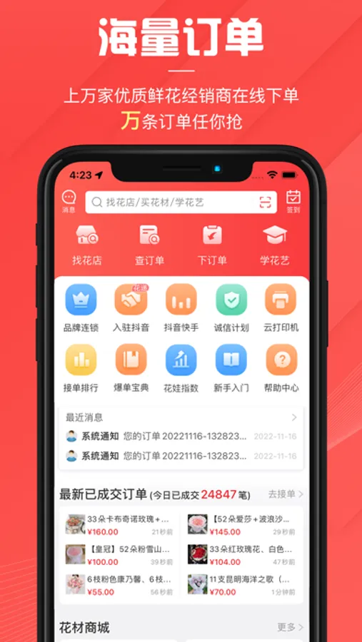 花娃-鲜花全产业链服务平台,超过6万+鲜花下单方,汇集全网每日3万+线上订单。