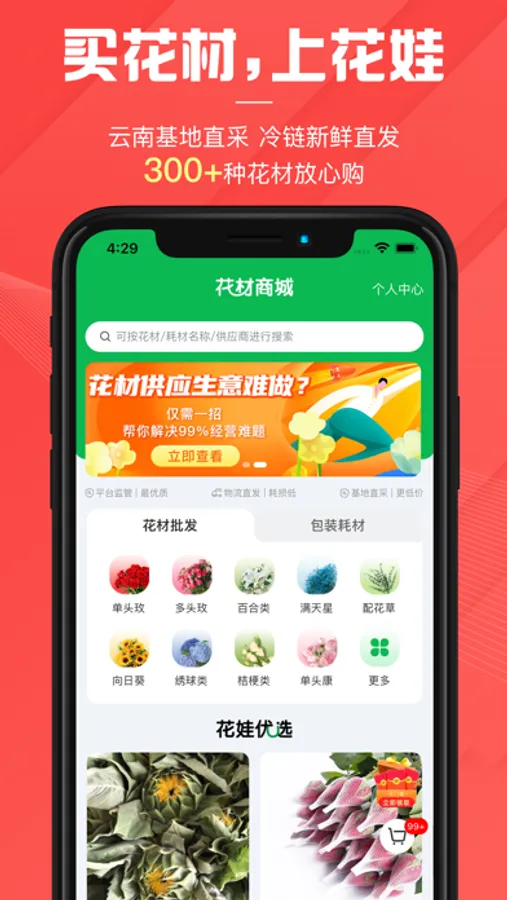3、鲜花耗材全品类,一站式省心采购