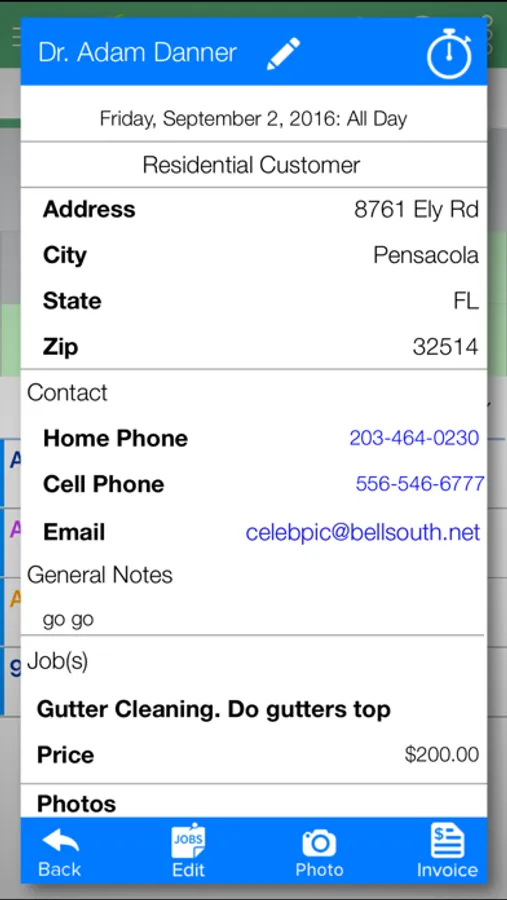We're always adding new features to the app. Some recent feature releases include a signature feature where you can capture signatures, a photo feature giving you a way to easily take photos from within the app or upload photos from your phone, a completely searchable database, credit card processing, an "I'm on the way" text messaging feature, discount options, ability to email general emails (with or w/o attachments) to your prospects and customers and much more. Plus we have a time tracking feature and a clock in/clock out feature available!