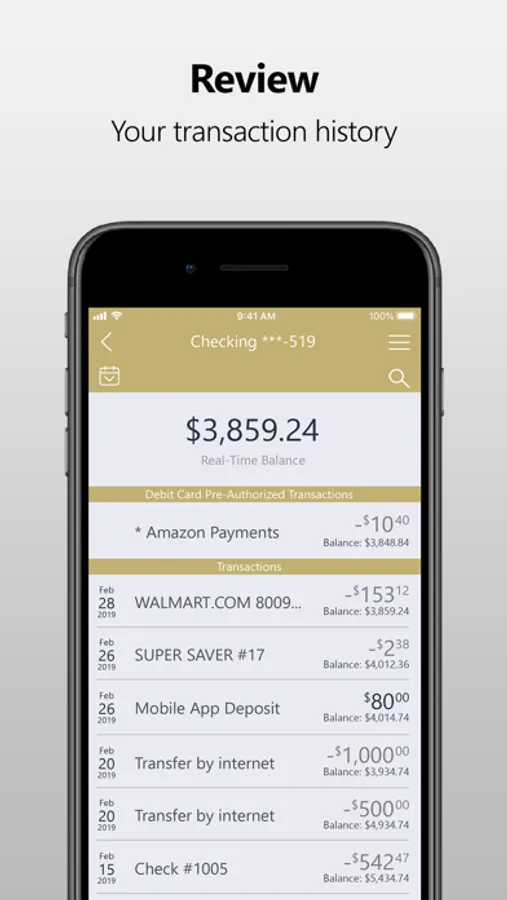 Manage your accounts anytime with our Mobile Banking App. Deposit checks, pay bills, view history, check balances, and transfer money all with one simple to use app.
