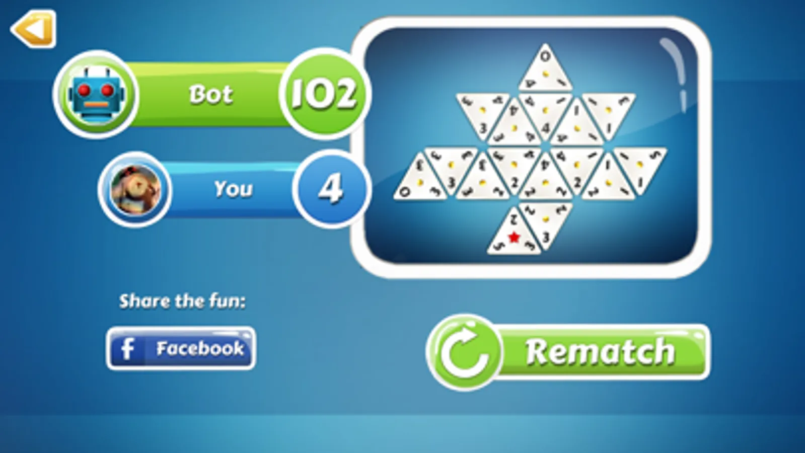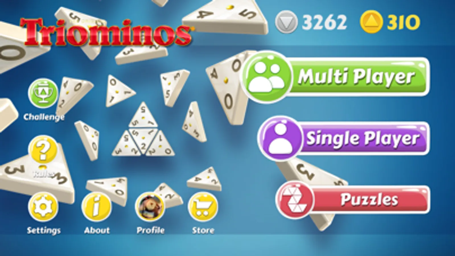 Triominos is an online, multi-player game, that lets you compete with your friends and family anywhere, any time. Search for your friends by username or invite your Facebook friends to play. You can play as many games as you want, simultaneously! Receive push notifications when someone invited you or made a move.