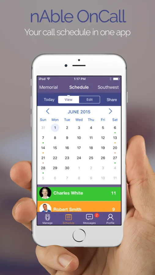 The call schedule administrator creates a call group, invites members to join the group and asks for their call preferences. Aided by the nAble OnCall and the input from the group members, the administrator creates an equitable call schedule. The group members can send messages within the group to request call swaps or seek temporary coverage arrangements. The call schedule is displayed in color-coded format on a monthly calendar, which can be shared, emailed, and printed.