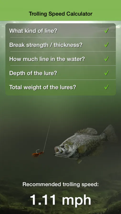Once you enter this information, and tell it how deep you want to fish, the app can estimate a trolling speed to allow you to fish at your desired depth.