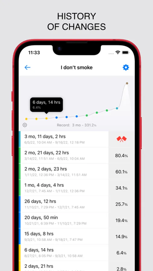 The app will notify you if the previous record has been reached. Keep reaching for new records, strengthening your willpower!