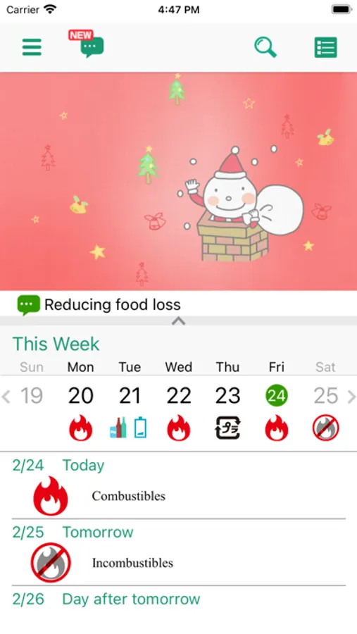 You can check announcements concerning changes in the collection schedule and information on special events.