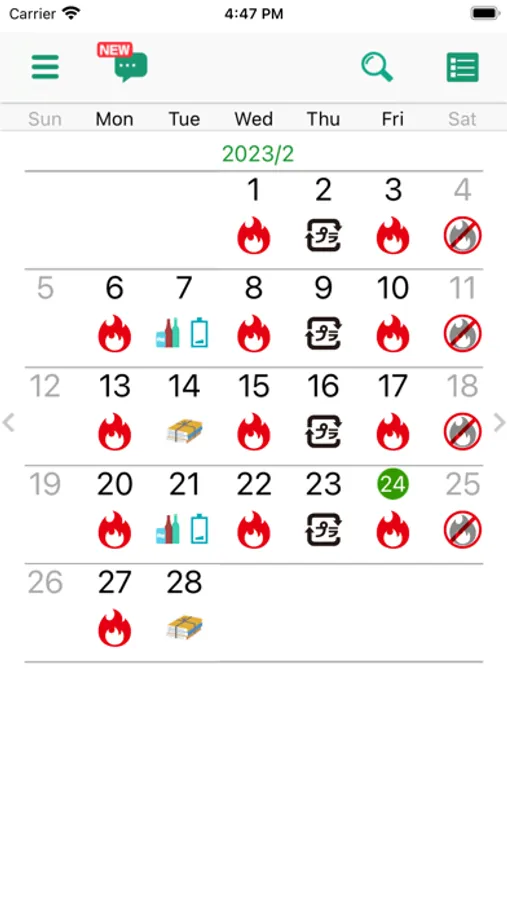 You can check three patterns of the garbage collection schedule on one screen at a glance: “Today and Tomorrow,” “Weekly,” and “Monthly.”