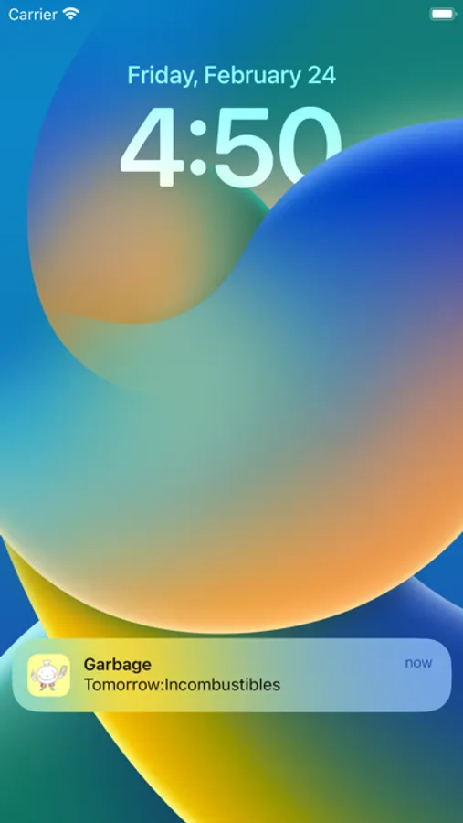 You can receive an alert to tell you about scheduled garbage collection on the day before and the day of collection. You can also set the time you want to receive alerts.