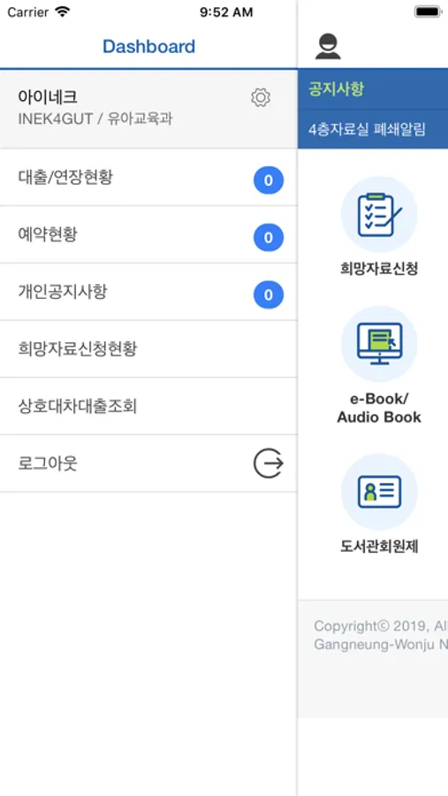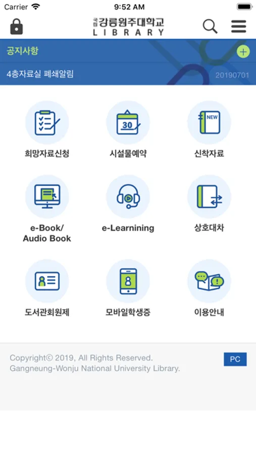 강릉원주대 모바일 전자도서관 시스템(GWNU Library)은
