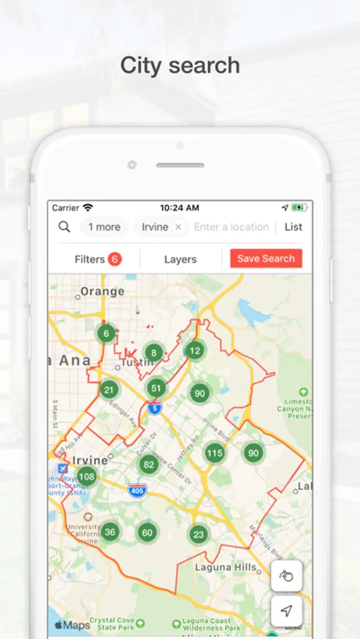 • Search by your current location (using the GPS locator), type in a specific address, or draw a custom region on the mobile map