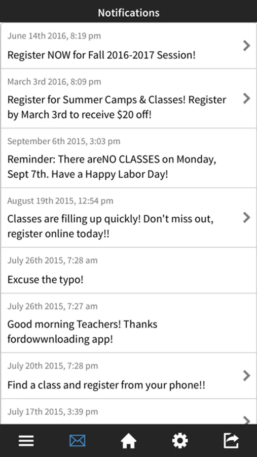Receive push notifications of studio closings, upcoming events, special announcements and more.