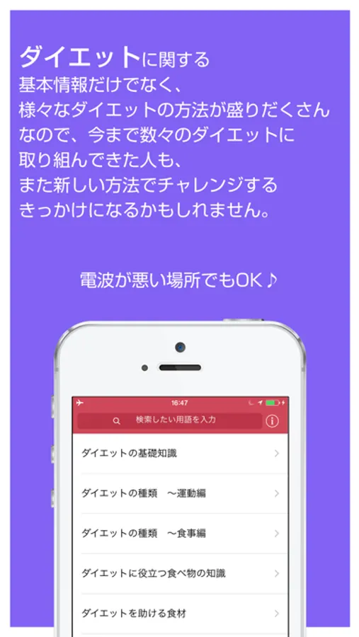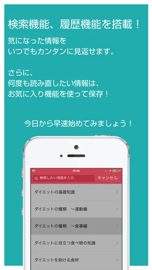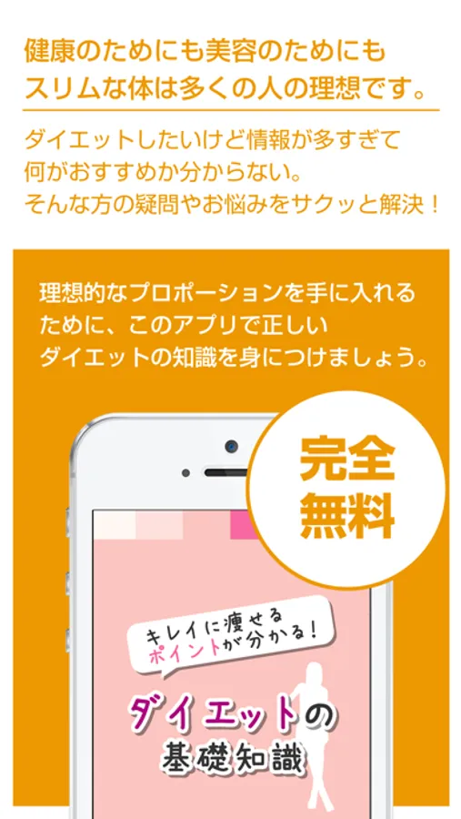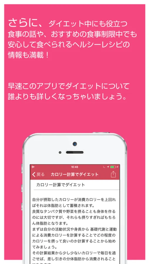今まで数あるダイエットを試してきた方や、リバウンドに悩まされてきたダイエット経験者の方も、このアプリで正しい知識を身につけて、健康で美しいカラダを目指しましょう。