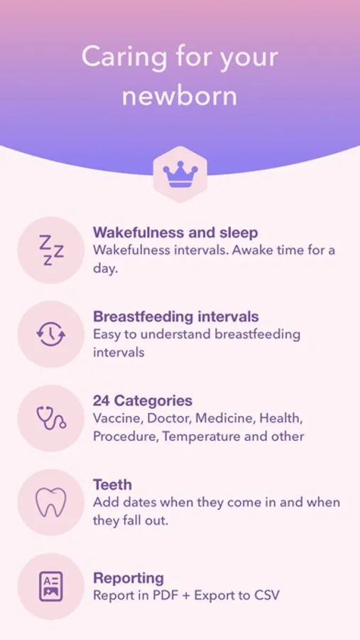 You will definitely like our filters as well. Analyzing data in this application is very easy. No need to calculate things, everything is done automatically. There’s a table or graph view of each 24-hour summary set up to help you stay in touch with your kids’ schedule. Our personal development graphs will help you catch anything out of the ordinary.