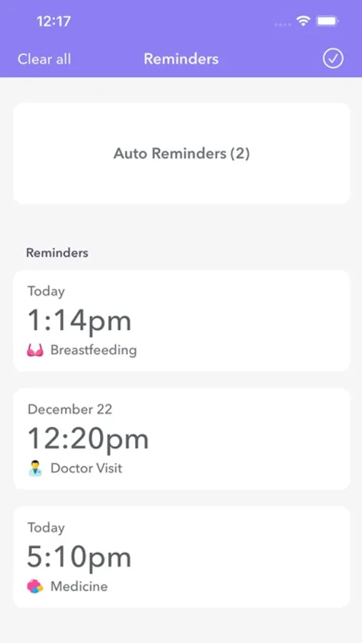 - Event Reminders (food, sleep, medical appointment, etc.)