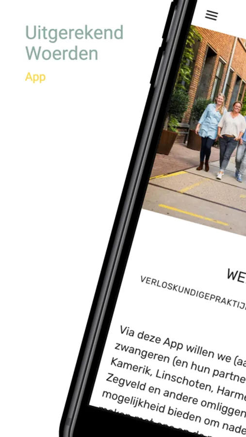 Via deze App bieden we (aanstaande) zwangeren en partners de mogelijkheid om nader kennis te maken met ons en de praktijk. De App bevat informatie over onderwerpen die te maken hebben met zwanger worden, de zwangerschap, de bevalling en kraambed. Ook al loop je niet bij Verloskundigenpraktijk Uitgerekend Woerden onder controle, dan biedt de app je duidelijke informatie en handige tools, zoals: