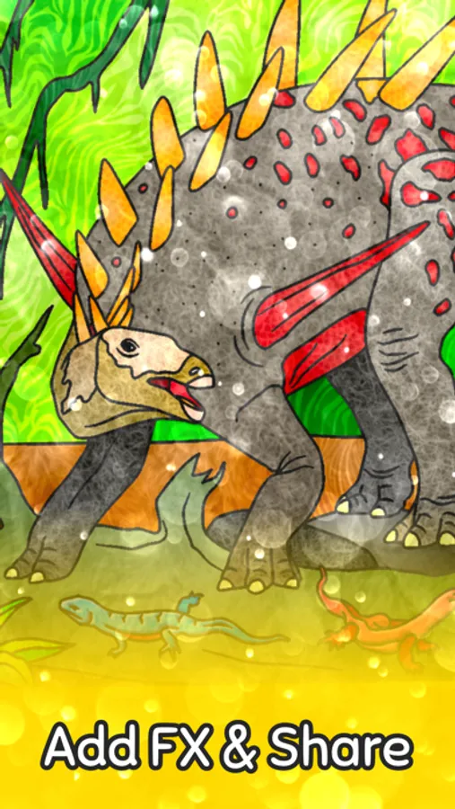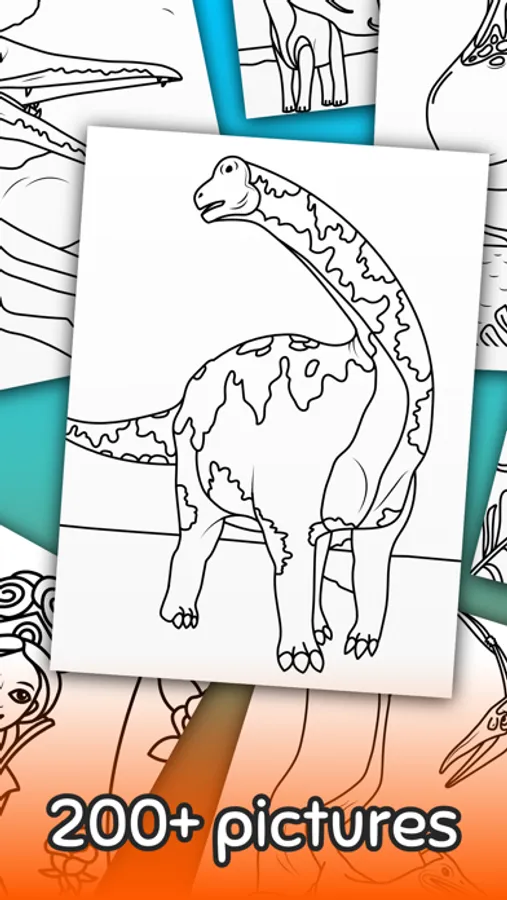 Free app for all dino fans with 200+ coloring pages of dinosaurs. Lots of designs with friendly herbivores, lovely mother dinos with their kids and fierce dino king like T Rex.