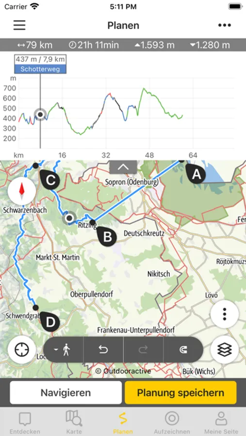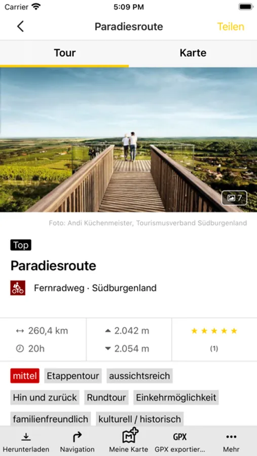 - Basis Infos (Distanz, Höhenmeter, Dauer, Schwierigkeit)