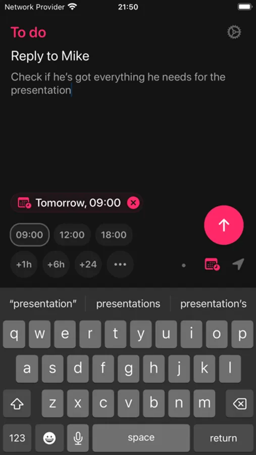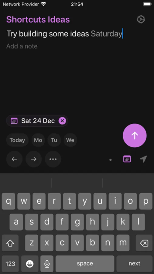 Remind Me Faster is designed to let you add a reminder with as few taps as possible. Open the app and you're typing. Add a reminder and you're ready to type the next. The interface is optimised for the moment something crosses your mind.