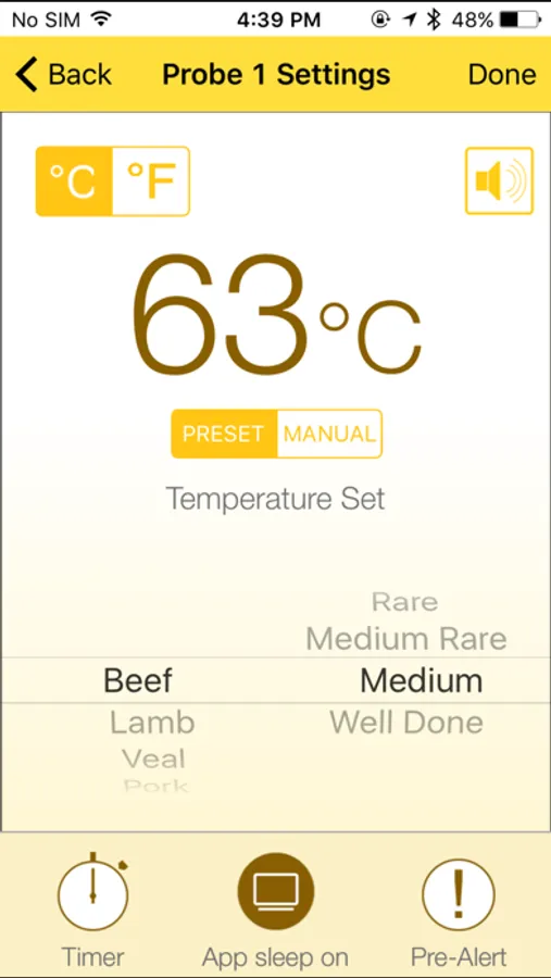 * Pre-programmed doneness temperature or user own setting